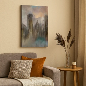 Het canvas wordt over het frame gespannen. De zijkanten en randen zijn bedrukt en zetten het beeld voort. De schilderij is klaar om aan de muur te hangen. Elk product heeft een hanger aan het frame en een montagekit (schroef + pin).