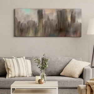 Schilderen op canvas - Een compositie van staal, steen en mist - 45x80 cm