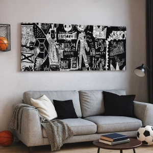 Het canvas wordt over het frame gespannen. De zijkanten en randen zijn bedrukt en zetten het beeld voort. De schilderij is klaar om aan de muur te hangen. Elk product heeft een hanger aan het frame en een montagekit (schroef + pin).