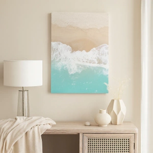 Elk detail van het schilderij, van de turquoise tinten van het water tot de delicate golven, is met aandacht voor de kleinste details vervaardigd, wat resulteert in een kunstwerk dat inspireert en verrukt. Het schilderij "Caring Touch" is een ideale keuze voor natuurliefhebbers en minimalistische decoraties die de rust en schoonheid van natuurlijke landschappen in hun interieur willen brengen.