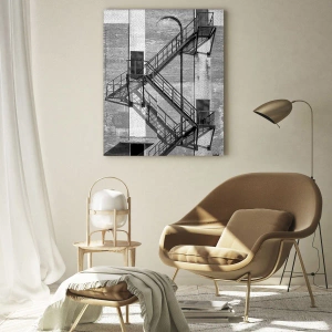 • Trap, Zwart en Wit, Gebouw, Architectuur, zwart en wit, vintage en retro, Voor op kantoor, voor de studeerkamer, voor de eetkamer, voor de hal, voor de woonkamer, voor de slaapkamer, Wit, grijs, zwart en wit, Verticaal