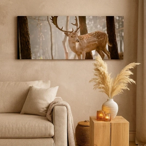 De gedetailleerde weergave van het hert en de delicate, natuurlijke kleuren van het bos zorgen ervoor dat dit schilderij een element van verfijnde schoonheid aan het interieur toevoegt. Dit motief is perfect voor door de natuur geïnspireerde interieurs, of het nu in de woonkamer, slaapkamer of kantoor is, en voegt warmte en subtiele charme toe.