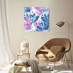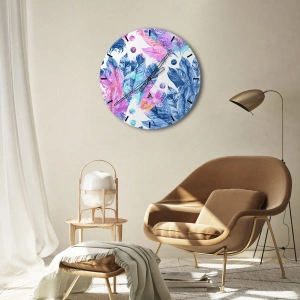 Wandklok - Klok - Pluimen in roze en blauw - 30x30 cm