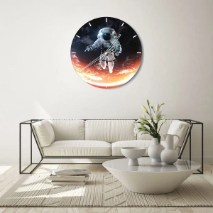 De klok is gemaakt van 4 mm dik gehard veiligheidsglas. De technologie van het maken van de klok voldoet aan de veiligheidsklasse 2B2 volgens de PN-EN 12600: 2004-norm, die weerstand tegen schokken garandeert. De klok op het glas is klaar om op te hangen - hij heeft een metalen hanger aan de achterkant van de klok en een schuimafstand die de even afstand tussen de klok en de muur regelt. De klok heeft een stil zwevend mechanisme dat wordt aangedreven door een batterij van 1,5 V - AA-batterij (batterij niet inbegrepen).