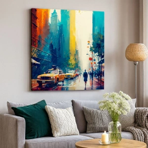Schilderen op canvas - New York – zelfs de regen is hier kleurrijk - 30x30 cm