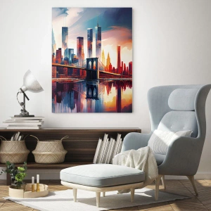 - Een indrukwekkend panorama van de stad, met zijn iconische brug en wolkenkrabbers weerspiegeld in het water. Een schilderij vol kleur, licht en dynamiek, perfect voor stedelijke interieurs.