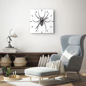 Wandklok - Klok - Zwart-witillustratie van een spin op een witte achtergrond - 30x30cm - Verontrustende precisie - Moderne wanddecoratie voor woonkamer, keuken en slaapkamer ARTTOR