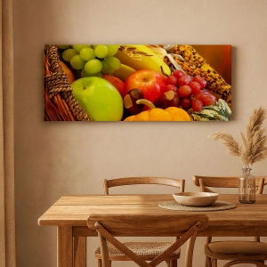 Dit ARTTOR canvas schilderij presenteert een prachtige compositie van de herfstgeschenken van de natuur. De titel van het werk, "Oogstmand", vat de sfeer van warme en gezellige interieurs perfect samen. Een mand vol fruit, zoals appels, druiven en een pompoen, creëert een harmonieus geheel dat perfect past bij de rustieke en door de natuur geïnspireerde stijl.