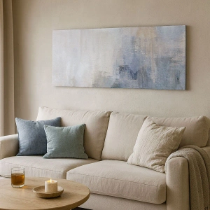 Het canvas wordt over het frame gespannen. De zijkanten en randen zijn bedrukt en zetten het beeld voort. De schilderij is klaar om aan de muur te hangen. Elk product heeft een hanger aan het frame en een montagekit (schroef + pin).