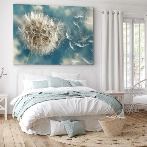 Schilderen op canvas - Een uitgebloeide paardenbloem tegen een blauwe lucht - 70x50cm - Engelen adem - Moderne wanddecoratie voor woonkamer en slaapkamer ARTTOR