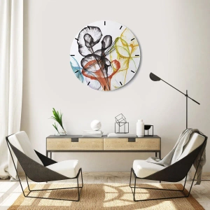 De klok is gemaakt van 4 mm dik gehard veiligheidsglas. De technologie van het maken van de klok voldoet aan de veiligheidsklasse 2B2 volgens de PN-EN 12600: 2004-norm, die weerstand tegen schokken garandeert. De klok op het glas is klaar om op te hangen - hij heeft een metalen hanger aan de achterkant van de klok en een schuimafstand die de even afstand tussen de klok en de muur regelt. De klok heeft een stil zwevend mechanisme dat wordt aangedreven door een batterij van 1,5 V - AA-batterij (batterij niet inbegrepen).