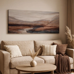 • Landschap, Landschap, Kunst, Abstracties, landschappen, kunst, Voor op kantoor, voor de studeerkamer, voor de eetkamer, voor de hal, voor de woonkamer, voor de slaapkamer, Bruin, zwart, grijs, Panoramisch