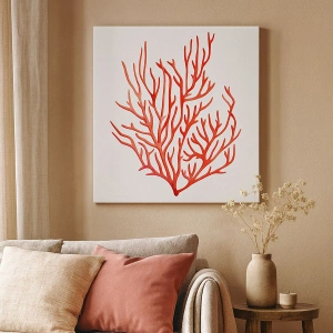 • Koraalrif, kust, minimalistisch, Nautisch, natuur, pastel, dieren, Voor op kantoor, voor de studeerkamer, voor de eetkamer, voor de badkamer, voor de hal, voor de woonkamer, voor de slaapkamer, Wit rood, Plein