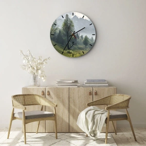 De klok is gemaakt van 4 mm dik gehard veiligheidsglas. De technologie van het maken van de klok voldoet aan de veiligheidsklasse 2B2 volgens de PN-EN 12600: 2004-norm, die weerstand tegen schokken garandeert. De klok op het glas is klaar om op te hangen - hij heeft een metalen hanger aan de achterkant van de klok en een schuimafstand die de even afstand tussen de klok en de muur regelt. De klok heeft een stil zwevend mechanisme dat wordt aangedreven door een batterij van 1,5 V - AA-batterij (batterij niet inbegrepen).