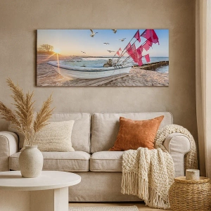 Het canvas wordt over het frame gespannen. De zijkanten en randen zijn bedrukt en zetten het beeld voort. De schilderij is klaar om aan de muur te hangen. Elk product heeft een hanger aan het frame en een montagekit (schroef + pin).