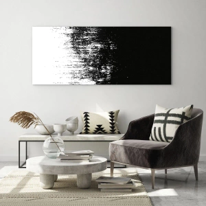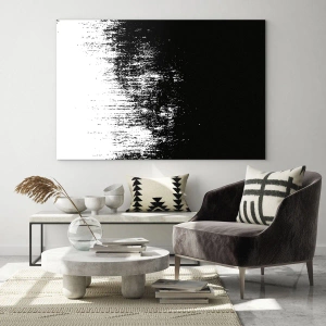 - Een schilderij dat het dynamische contrast tussen zwart en wit in een abstracte vorm weergeeft.