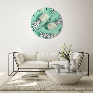 De klok is gemaakt van 4 mm dik gehard veiligheidsglas. De technologie van het maken van de klok voldoet aan de veiligheidsklasse 2B2 volgens de PN-EN 12600: 2004-norm, die weerstand tegen schokken garandeert. De klok op het glas is klaar om op te hangen - hij heeft een metalen hanger aan de achterkant van de klok en een schuimafstand die de even afstand tussen de klok en de muur regelt. De klok heeft een stil zwevend mechanisme dat wordt aangedreven door een batterij van 1,5 V - AA-batterij (batterij niet inbegrepen).