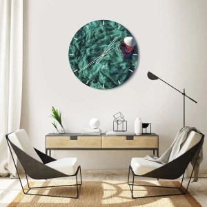 De klok is gemaakt van 4 mm dik gehard veiligheidsglas. De technologie van het maken van de klok voldoet aan de veiligheidsklasse 2B2 volgens de PN-EN 12600: 2004-norm, die weerstand tegen schokken garandeert. De klok op het glas is klaar om op te hangen - hij heeft een metalen hanger aan de achterkant van de klok en een schuimafstand die de even afstand tussen de klok en de muur regelt. De klok heeft een stil zwevend mechanisme dat wordt aangedreven door een batterij van 1,5 V - AA-batterij (batterij niet inbegrepen).