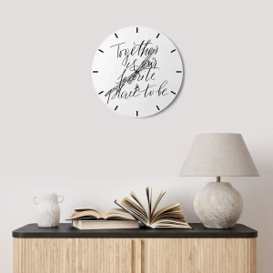 De klok is gemaakt van 4 mm dik gehard veiligheidsglas. De technologie van het maken van de klok voldoet aan de veiligheidsklasse 2B2 volgens de PN-EN 12600: 2004-norm, die weerstand tegen schokken garandeert. De klok op het glas is klaar om op te hangen - hij heeft een metalen hanger aan de achterkant van de klok en een schuimafstand die de even afstand tussen de klok en de muur regelt. De klok heeft een stil zwevend mechanisme dat wordt aangedreven door een batterij van 1,5 V - AA-batterij (batterij niet inbegrepen).