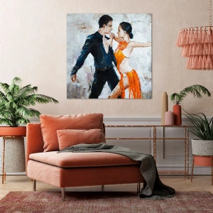 De artistieke uitvoering van het schilderij benadrukt de sensualiteit en schoonheid van de dans. Elk detail, van gebaren tot gezichtsuitdrukkingen, is nauwkeurig weergegeven, wat een unieke sfeer creëert. Het schilderij is perfect als decoratief element voor een woonkamer, slaapkamer of artistieke ruimte en brengt passie en expressiviteit in het interieur.