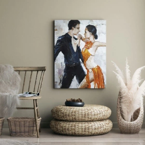 "Dirty Dancing" is een energiek canvas schilderij dat een dansend koppel in Latijns-Amerikaanse stijl vastlegt. De beweging, passie en emoties die op het canvas worden weergegeven, trekken de aandacht en geven het interieur een dynamisch karakter. De kleuren, gedomineerd door warme tinten, voegen uitzonderlijke warmte en expressie toe aan de compositie.