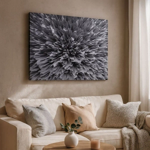 Het canvas wordt over het frame gespannen. De zijkanten en randen zijn bedrukt en zetten het beeld voort. De schilderij is klaar om aan de muur te hangen. Elk product heeft een hanger aan het frame en een montagekit (schroef + pin).