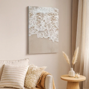 Het canvas wordt over het frame gespannen. De zijkanten en randen zijn bedrukt en zetten het beeld voort. De schilderij is klaar om aan de muur te hangen. Elk product heeft een hanger aan het frame en een montagekit (schroef + pin).