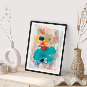 - De poster toont een expressieve compositie van abstracte vormen in levendige kleuren. De dynamische structuur en het rijke kleurenpalet geven het interieur een modern en artistiek karakter.