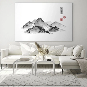 Wandschilderij - Ver Weg - Minimalistisch Berglandschap in Oosterse Stijl