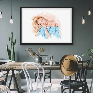 • Vrouw, Mode, Grafisch, Mensen, mode, pastel, Voor de keuken, Voor de hal, Voor de woonkamer, Voor de slaapkamer, Wit Blauw, Verticaal