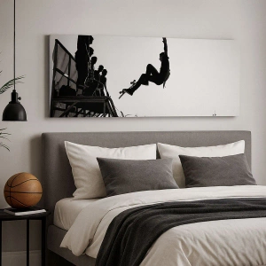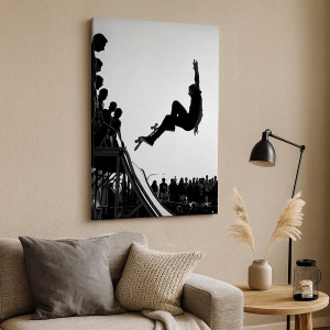 Het canvas wordt over het frame gespannen. De zijkanten en randen zijn bedrukt en zetten het beeld voort. De schilderij is klaar om aan de muur te hangen. Elk product heeft een hanger aan het frame en een montagekit (schroef + pin).