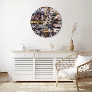 - Een wandklok met een panoramisch vogelperspectief op de stad bij nacht. Dynamische straatverlichting en hoogbouw creëren het spectaculaire effect van een moderne metropool.