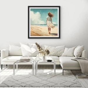 • meisje, strand, lopen, Mensen, nautisch, pastel, landschappen, reizen, kunst, Voor op kantoor, voor de studeerkamer, voor de eetkamer, voor de badkamer, voor de hal, voor de woonkamer, voor de slaapkamer, Wit, bruin, blauw, grijs, Plein