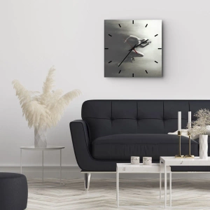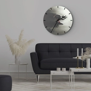 De klok is gemaakt van 4 mm dik gehard veiligheidsglas. De technologie van het maken van de klok voldoet aan de veiligheidsklasse 2B2 volgens de PN-EN 12600: 2004-norm, die weerstand tegen schokken garandeert. De klok op het glas is klaar om op te hangen - hij heeft een metalen hanger aan de achterkant van de klok en een schuimafstand die de even afstand tussen de klok en de muur regelt. De klok heeft een stil zwevend mechanisme dat wordt aangedreven door een batterij van 1,5 V - AA-batterij (batterij niet inbegrepen).