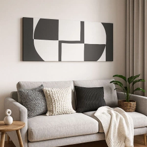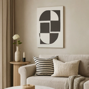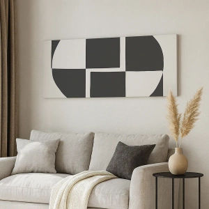 - De canvasprint "Antithesis – Synthesis" toont geometrische abstracte vormen in contrasterend zwart-wit. Het is een perfecte aanvulling op moderne en minimalistische interieurs.