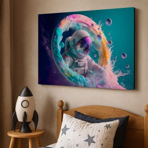 Het ruimtemotief van het schilderij astronaut staat symbool voor ontdekkingstocht, nieuwsgierigheid naar de wereld en eindeloze mogelijkheden. Kleurrijke accenten gecombineerd met een galactische achtergrond creëren een harmonieus geheel dat past bij zowel minimalistische als expressievere interieurs. Het schilderij kan ook een inspirerend cadeau zijn voor liefhebbers van astronomie, wetenschap of moderne kunst.