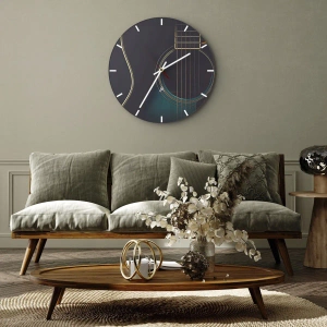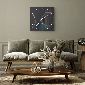 De klok is gemaakt van 4 mm dik gehard veiligheidsglas. De technologie van het maken van de klok voldoet aan de veiligheidsklasse 2B2 volgens de PN-EN 12600: 2004-norm, die weerstand tegen schokken garandeert. De klok op het glas is klaar om op te hangen - hij heeft een metalen hanger aan de achterkant van de klok en een schuimafstand die de even afstand tussen de klok en de muur regelt. De klok heeft een stil zwevend mechanisme dat wordt aangedreven door een batterij van 1,5 V - AA-batterij (batterij niet inbegrepen).