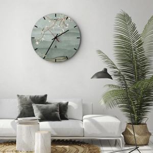 Wandklok - Klok - Een tak met bloemen en vogels tegen een achtergrond van groene heuvels - 30x30cm - Lente, oh jij bent het - Moderne wanddecoratie voor woonkamer, keuken en slaapkamer ARTTOR