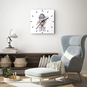 De klok is gemaakt van 4 mm dik gehard veiligheidsglas. De technologie van het maken van de klok voldoet aan de veiligheidsklasse 2B2 volgens de PN-EN 12600: 2004-norm, die weerstand tegen schokken garandeert. De klok op het glas is klaar om op te hangen - hij heeft een metalen hanger aan de achterkant van de klok en een schuimafstand die de even afstand tussen de klok en de muur regelt. De klok heeft een stil zwevend mechanisme dat wordt aangedreven door een batterij van 1,5 V - AA-batterij (batterij niet inbegrepen).