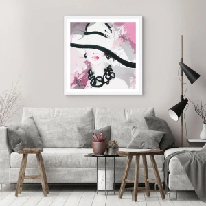 Poster in een witte lijst - Portret van een dame in zwart en roze - 50x50 cm