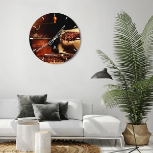Wandklok - Klok - Stilleven met koffiebonen en een molen - 40x40 cm