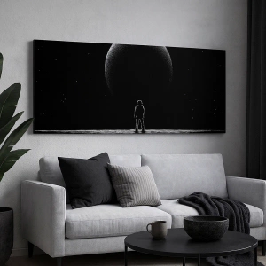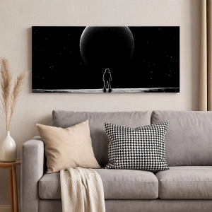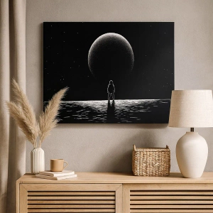 Het canvas wordt over het frame gespannen. De zijkanten en randen zijn bedrukt en zetten het beeld voort. De schilderij is klaar om aan de muur te hangen. Elk product heeft een hanger aan het frame en een montagekit (schroef + pin).