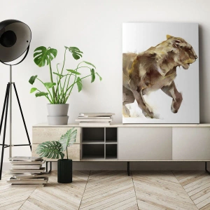 Het product is gedrukt op hoogwaardig canvas, wat duurzaamheid en een uitstekende weergave van details en kleuren garandeert. Het horizontale formaat van 70x50 cm zorgt voor een effectieve wandpresentatie en introduceert een element van wilde natuur en artistieke expressie in het interieur. Het schilderij is klaar om op te hangen, wat het een praktische en handige oplossing maakt.
