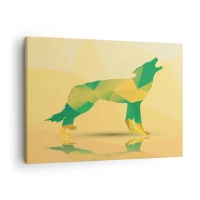 Schilderen op canvas - Geometrisch wolvensilhouet in groene en gele tinten - 70x50cm - Een eenzame wolf - Moderne wanddecoratie voor woonkamer en slaapkamer ARTTOR
