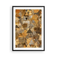 Poster in een zwarte lijst - Gouden abstracte geometrische compositie - 50x70cm - De wereld in vorm - Moderne wanddecoratie voor woonkamer en slaapkamer ARTTOR