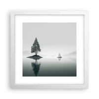 Poster in een zwarte lijst - Een eenzame boom op een eiland met een weerspiegeling in het water - 50x70cm - Droom - Moderne wanddecoratie voor woonkamer en slaapkamer ARTTOR