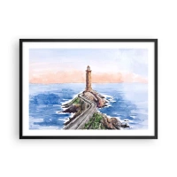 Poster in een zwarte lijst - Kijkend naar de zee - 70x50 cm