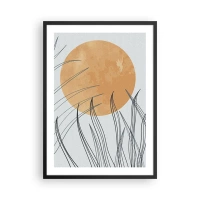 Poster in een zwarte lijst - Een minimalistische compositie met de maan en het gras - 50x70cm - Altijd naar de zon - Moderne wanddecoratie voor woonkamer en slaapkamer ARTTOR