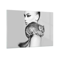 Schilderen op glas - Dame met een chinchilla - 100x70 cm