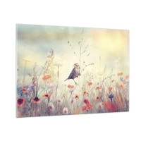 Schilderen op glas - Vogelportret met een weiland op de achtergrond - 100x70 cm